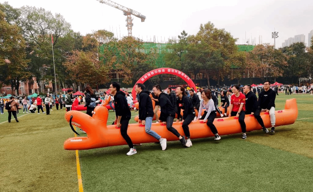 在上午的陆地龙舟比赛中,短暂拉练后,比赛正式开始。信管陆地方舟比赛队伍由开始手足无措到后来的默契有序,渐渐有了经验。大家同心同力,迈着统一的步伐,“秉着龙舟”,团结一致朝终点冲去。三十米的赛道看似短,实际上对于团队合作能力和队员之间的配合是很大的考验。最终,在大家的努力下,信管青年教师队获得了教职工组陆地龙舟比赛的小组第二名。在比赛期间,有许多信管学生为老师加油鼓劲,呐喊助威,帮助老师调整步伐,指引老师掌握技巧,让队伍做到整齐划一。比赛结束后,老师与同学们合影留念,增进了师生感情。