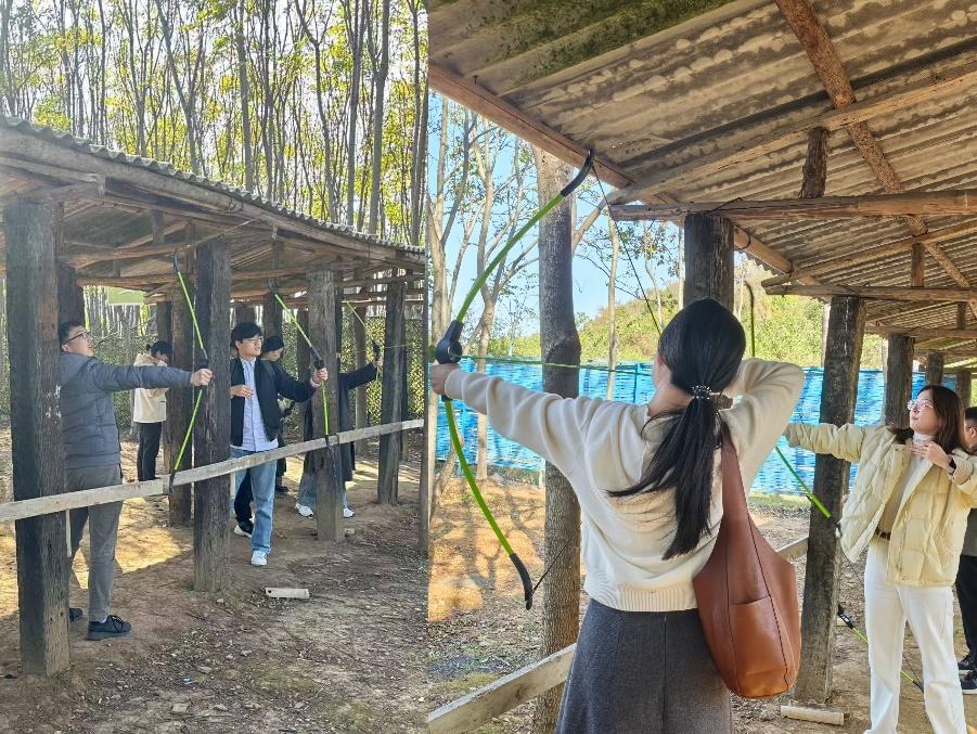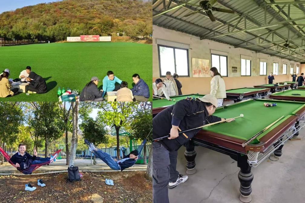 午餐后是自由活动时间,老师们根据自己的兴趣爱好自由选择活动项目。有的老师漫步在生态园的湖边,享受着清新的空气与优美的自然风光;有的老师在湖中悠然划船,感受着水上运动的惬意;还有的老师在射箭场一展身手,体验射箭运动的独特魅力。此外,台球室、棋牌室里也传来阵阵欢声笑语,老师们在轻松愉悦的氛围中放松身心,尽情享受这难得的休闲时光。