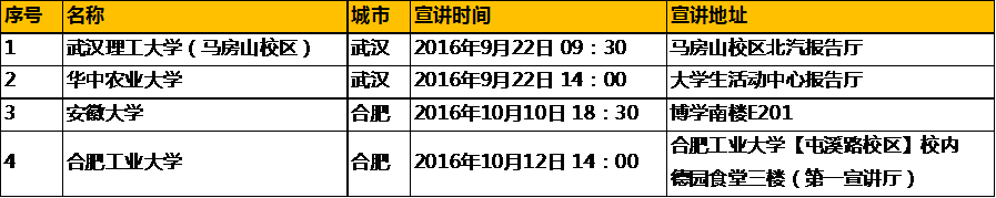 注:每场宣讲会完毕后会进行笔试,请应聘同学尽量参加现场宣讲会并投递简历(需携带水性笔和个人纸质版简历)。