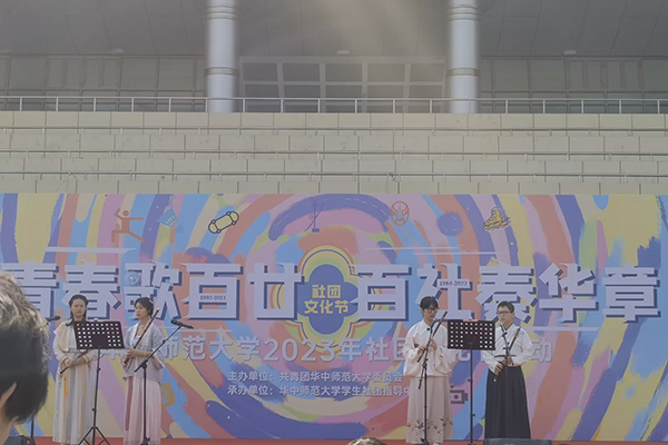 (通讯员 赵文青)4月8日,华中师范大学笛箫协会参与完成2023年“青春歌百廿,百社奏华章”社团文化节活动。会长徐思成及成员孙萌、冯康康、申冬旭等到场组织活动。本次社团文化节的举办不仅让现场的同学收获了欢声笑语,更进一步壮大了社团队伍的规模。