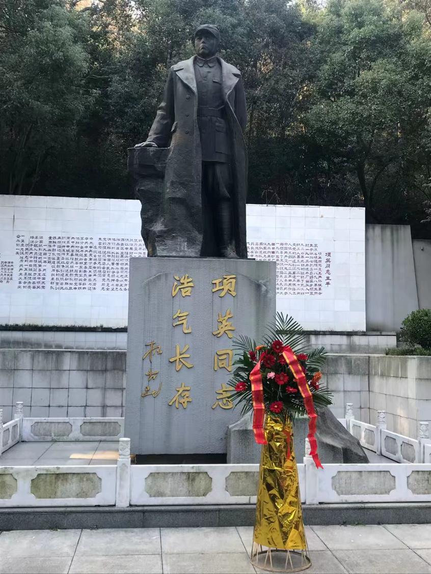 到达现场后,在场学生怀着无比崇敬的心情,拾级而上,来到项英烈士的塑像前敬献花篮,并整齐列队,肃立默哀,向项英烈士三鞠躬。