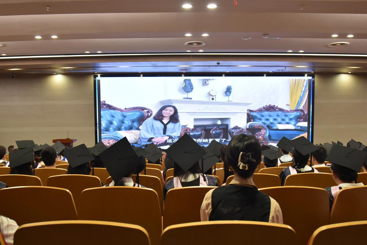 “毕业快乐,前程似锦!”学生家长与低年级同学的祝福视频让现场的毕业生们感动颇深,毕业研究生代表王妞妞和本科生代表陈国梁回顾了过去几年的学习生活的时光,表达了对母校母院的感激与留恋,表示感恩过去所有,也期待着未来邂逅。