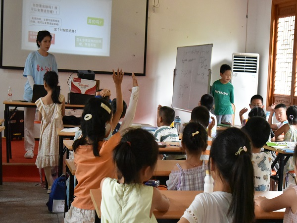 针对“信息泄露”这一主题,李嘉裕采取同样的方法,模拟诈骗团伙骗取个人信息时常用的骗术:电话诈骗。在有了前车之鉴后,同学们的警惕性有所提高。同学们猜出打电话的可能是骗子,但对于骗子提出的问题如“小朋友,你家住在哪里”“家里有没有人”等涉及个人信息问题不知该如何处理。李嘉裕教导同学们,遇到这种情况时,应该拒绝回答个人信息,立即挂掉电话并及时地告知父母。为了加深同学们的印象,李嘉裕邀请同学们齐声朗读应对措施。