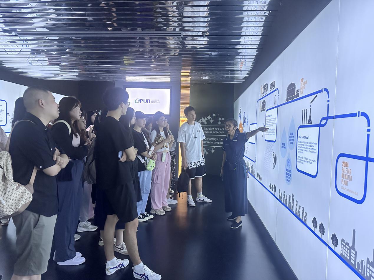 8月20日下午,团队成员前往当地著名污水处理中心“新生水”进行参观。新加坡的饮用水水主要来源于降雨、污水重新利用、进口水、海水淡化。为了高效利用水资源, 2002年,新加坡正式宣布新生水技术研发成功,主要利用了“微过滤”、“逆渗透”、“紫外线辐射”等先进技术净化污水,实现水资源的循环利用。团队首先欣赏一个趣味短视频,了解到新加坡水资源的相关知识,包括饮用水的来源,新加坡的地下管道建设等等。随后讲解员带领同学们进入不同的展厅,用英文向团队成员讲述新加坡处理污水的历史、处理污水的技术和原理等等知识,并参观当地处理污水的先进装置和大型设备。团队成员感受到新加坡人充分利用各类资源去净化水、管理水,感叹到新加坡人对水资源的高效管理能力和对不同资源的充分利用能力。