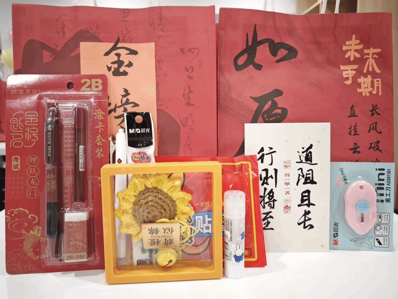 活动尾声,学院为每位学子送上定制“加油礼包”,内含考研需要的文具、暖手宝、写有鼓励话语的明信片,还有寓意“一举夺魁”的向日葵挂件。一份满载心意的加油包让学子们感受到浓浓的关怀。学子们表示:“我们会带着学院的祝福,轻装上阵,考出最好的自己”!