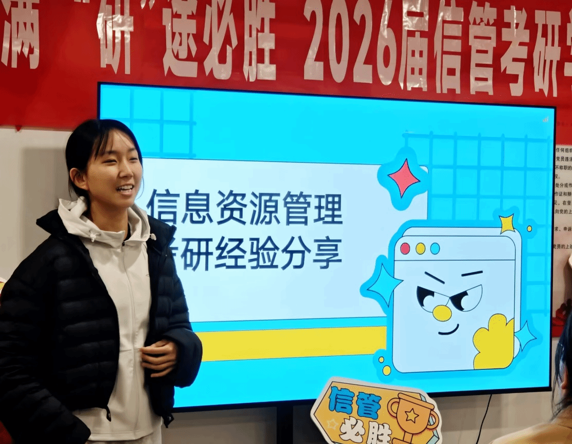 (通讯员 路雅丽)冬日的晨光漫过自习窗,笔尖划过习题册沙沙作响,2022级信息管理学院考研学子的冲刺战歌已进入最后篇章。为驱散考前焦虑、传递学院关怀,12月11日晚,信息管理学院在南湖2栋社区举办考研加油会,为即将奔赴考场的学子加油鼓劲。信息管理学院党委书记王雨露、2022级辅导员蒋可鸣出席活动,2025届上岸学长学姐——信息资源管理专业硕士陈镜、管理科学与工程专业硕士窦浩宇带着“实战经验”为学弟学妹们拨开考前迷雾。